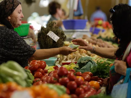 Florian face un gest către produsele din jurul său. Toate provin din România, explică el, așa că nu trebuie să vină de departe pentru a ajunge în această piață. El nu vinde roșii sau ardei, dar Dan, la o tarabă din apropiere, vinde: vin din; Grecia, din Bulgaria. Da, spune Dan (mulțumesc din nou, Google Translate), roșiile sunt mai scumpe acum.