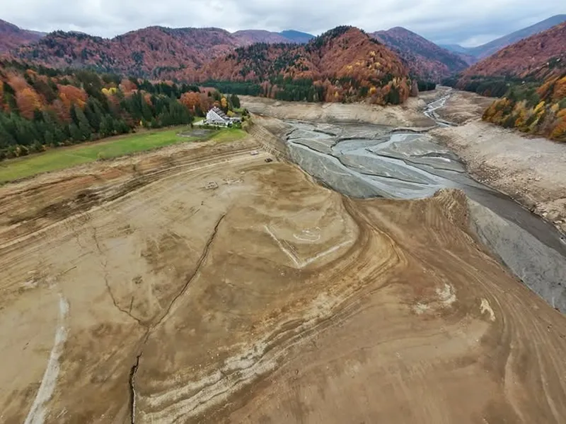 Lacul de acumulare de la barajul Vidraru a fost golit pentru prima dată în cei aproape 60 de ani de existență, pentru realizarea unor lucrări de retehnologizare.