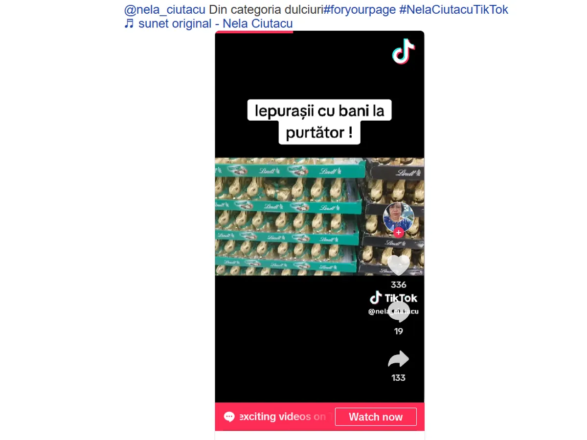 Mai jos aveți o imagine din clipul de pe tik tok care spunea oamenilor că în iepurașii de Paște se ascund bani.