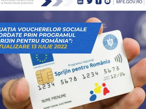 Ministerul Investiţiilor şi Proiectelor Europene anunţă că a fost finalizată emiterea cardurilor pe care sunt încărcate voucherele sociale în valoare de 250 de lei, care se acordă o dată la două luni, până în luna decembrie, prin programul „Sprijin pentru România”.