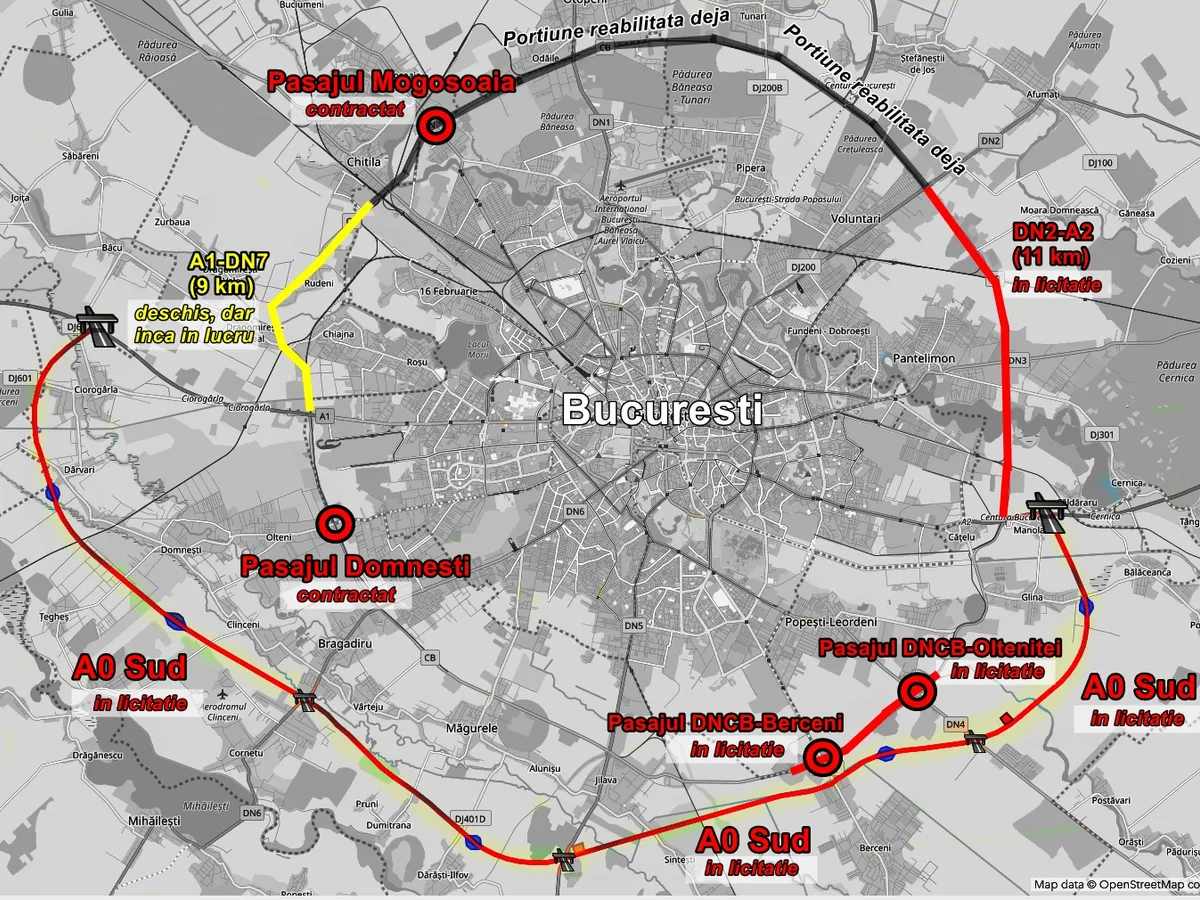"În ceea ce priveşte Sectorul de nord, cu cei 50 de km, avem un tronson pentru care am semnat contractul de proiectare şi execuţie şi trei tronsoane licitate, dar care se află în perioada de contestaţii, din păcate. Noi ne-am propus ca, până în 2023, Inelul de Centură al Bucureştiului să fie finalizat ca parte componentă a Coridorului principal pan-european Constanţa - Bucureşti - Piteşti - Sibiu - Nădlac", a apreciat Lucian Bode.