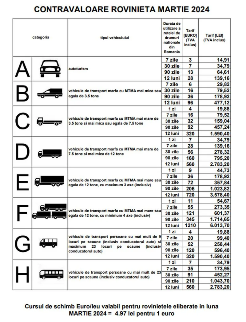 Tarife rovinietă până la 10 martie 2024