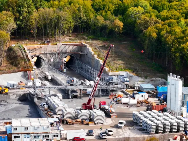Tunelul, cu cale dublă, are o lungime totală de peste 740 de metri.