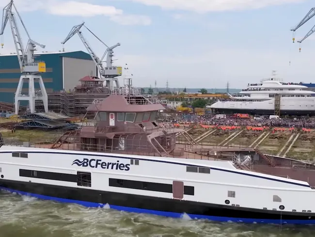 Lansarea feribotului electric a avut loc la Galați pe 22 mai. Nava va deservi rutele care leagă Nanaimo-Gabriola Island și Campbell River-Quadra Island.