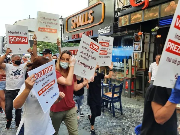 Câteva sute de angajați ai teraselor și restaurantelor din Centrul Vechi al Capitalei au protestat săptămâna trecută față de măsurile luate de Guvern din cauza pandemiei și care au afectat dramatic această industrie. Ei au vrut să tragă "un semnal de alarmă asupra viitorului celor 400.000 de persoane care muncesc în această industrie".