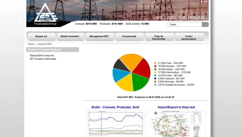 Foto: Mixul de producție energetică al României, marți, 8 iulie, ora 14.30