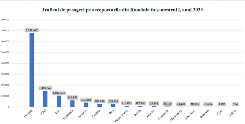 Top-ul aeroporturilor din România în primele 6 luni din 2023