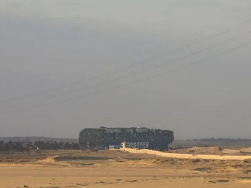 Remorcherele tractau portcontainerul către Marile Lacuri Amare, la mijlocul căii de navigaţie, unde urma să fie supus unor inspecţii.