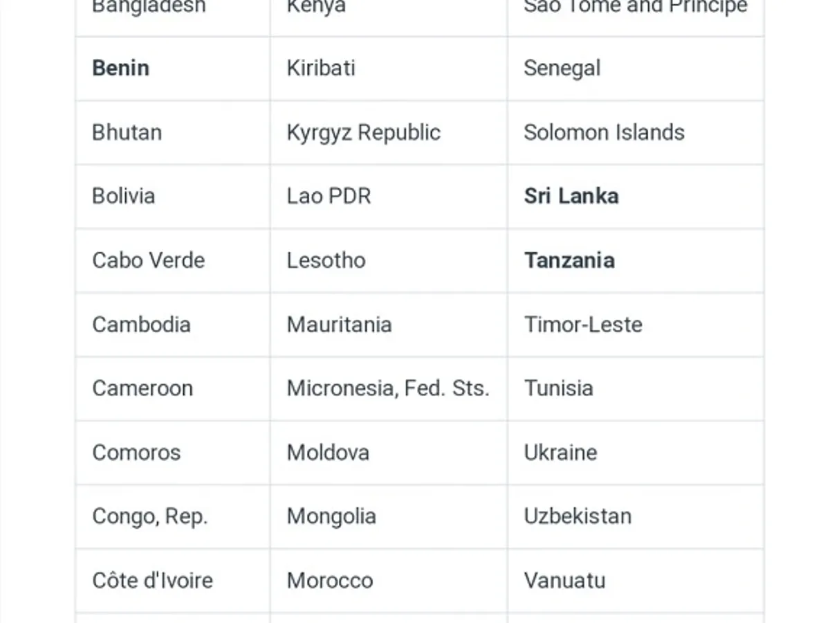 Șapte ţări au fost promovate în categorii superioare anul acesta, respectiv România, Benin, Indonezia, Mauritius, Nauru, Nepal şi Tanzania. Algeria, Sri Lanka şi Sudan au fost retrogradate pentru că venitul brut naţional s-a diminuat.