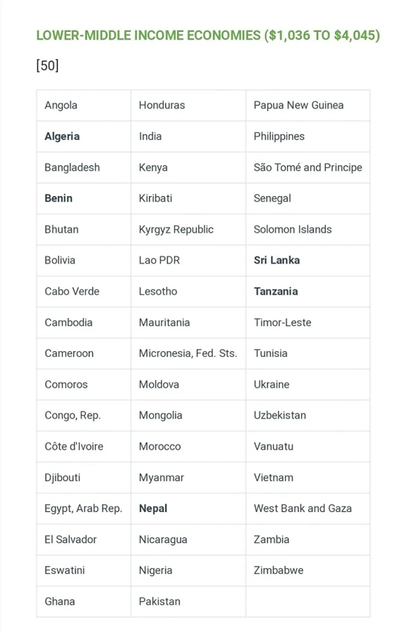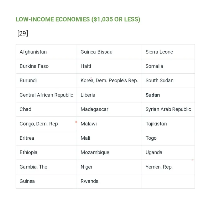 Banca Mondială clasează ţările în patru categorii în funcție de venitul brut pe cap de locuitor: