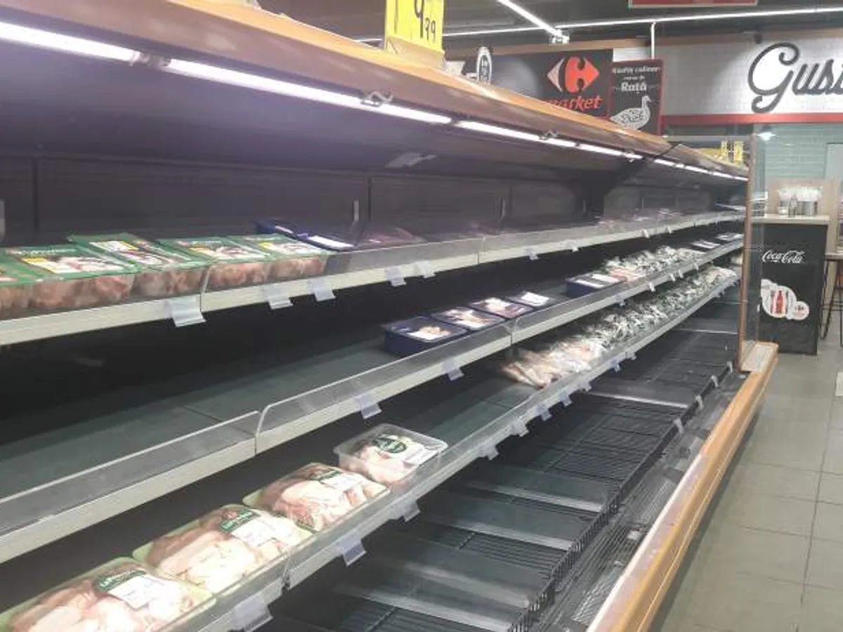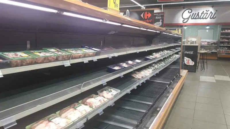 În România, rafturile cu produse cu valabilitate mai mare precum făină, mălai, paste sau conserve sunt aproape goale în unele lanțuri de retail.