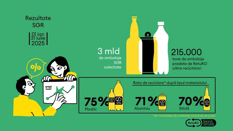 RetuRO, administratorul Sistemului de Garanție-Returnare, cel mai mare proiect de economie circulară din România, anunță evoluția și rezultatele programului pentru perioada ianuarie-iulie 2025.