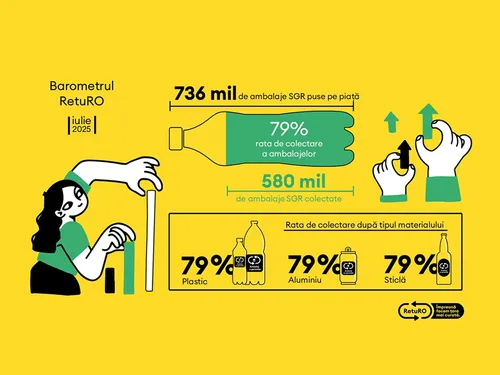Cu o rată de colectare de 79% în primele șapte luni ale acestui an, Sistemul de Garanție-Returnare continuă să sprijine tranziția României către o economie circulară, mobilizând milioane de români să adopte un comportament responsabil față de mediu.