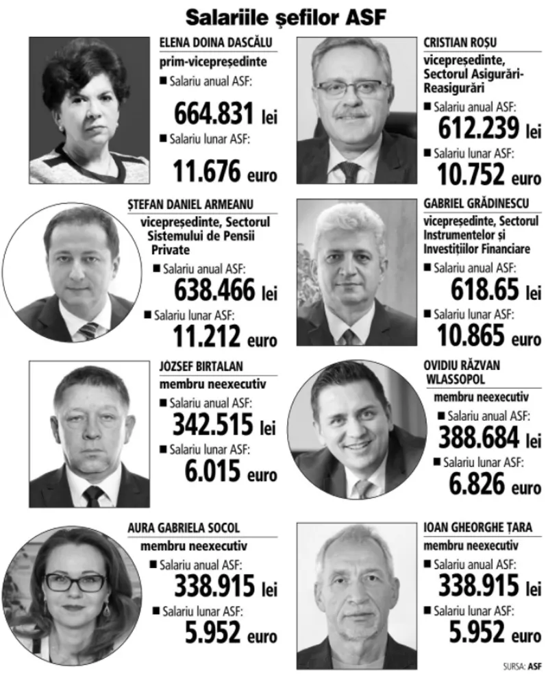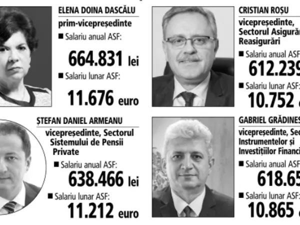 Salariile șefilor ASF: cel mai mare este de aproape 12.000 de euro lunar, cel mai mic de 6.000 euro