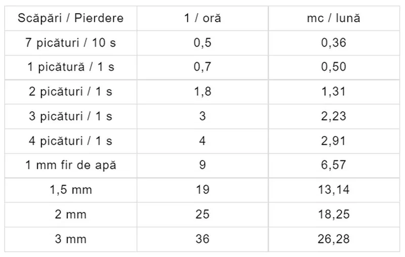 Valoarea la apă caldă este de 3.3 mc / persoana / luna, iar la apă rece, de 5,1 mc /persoana / lună.