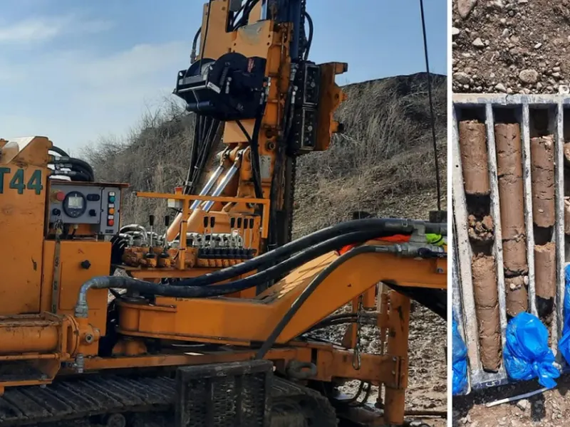 Concret, sunt executate foraje geotehnice și investigații geofizice pentru întocmirea studiului geotehnic, parte a documentației pentru proiectarea viitoare autostrăzi.