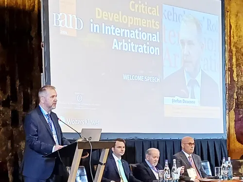 Discuțiile din cadrul acestei conferințe explorează modul în care arbitrajul poate contribui la acest echilibru delicat. În ceea ce privește tehnologia, pe măsură ce aceasta continuă să modeleze lumea noastră, constatăm că are un impact deosebit și asupra arbitrajului. Trebuie astfel, să ne adaptăm la noile instrumente, asigurând în același timp securitatea datelor, confidențialitatea și corectitudinea”, a declarat președintele Curții de Arbitraj Comercial Internațional de pe lângă CCIR, dl Ștefan Deaconu.