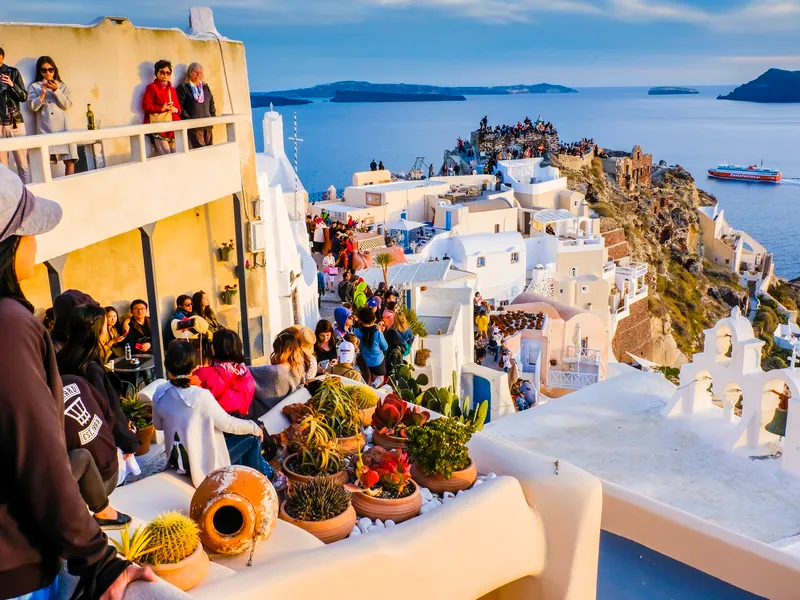 Insule ca Santorini, faimoasă pentru apusurile sale spectaculoase, se apropie rapid de punctul de saturație în ceea ce privește capacitatea de primire.