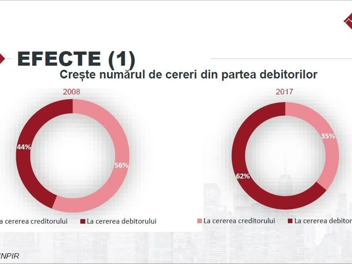 România a înregistrat o scădere de aproape 50% pe piața de insolvență, în ultimii 10 ani. Astfel, dacă în 2008 România avea 16.499 de cazuri noi, în 2018 sunt estimate pentru finalul anului, în jur de 8.300 de cazuri.