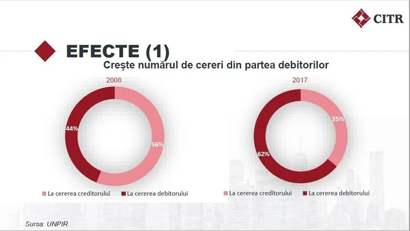 „Piața de insolvență din România este una matură, comparabilă cu cea a Marii Britanii (0,93%) sau a Franței (1,78%) din punctul de vedere al companiilor intrate anual în insolvență raportat la numărul total de companii. În ansamblu, în ultimii 10 ani, aproape 179.000 de companii au intrat în insolvență, în timp ce peste 800.000 au fost înființate. Dacă în 2008 insolvența unei companii era cerută preponderent de creditori, astăzi, în procent de 63% debitorii sunt cei care solicită procedura, ceea ce ne arată că din ce în ce mai mulți înțeleg insolvența ca pe o stare de fapt, de altfel exact așa cum și este definită de lege”, menționează Vasile Godîncă-Herlea, CEO CITR.