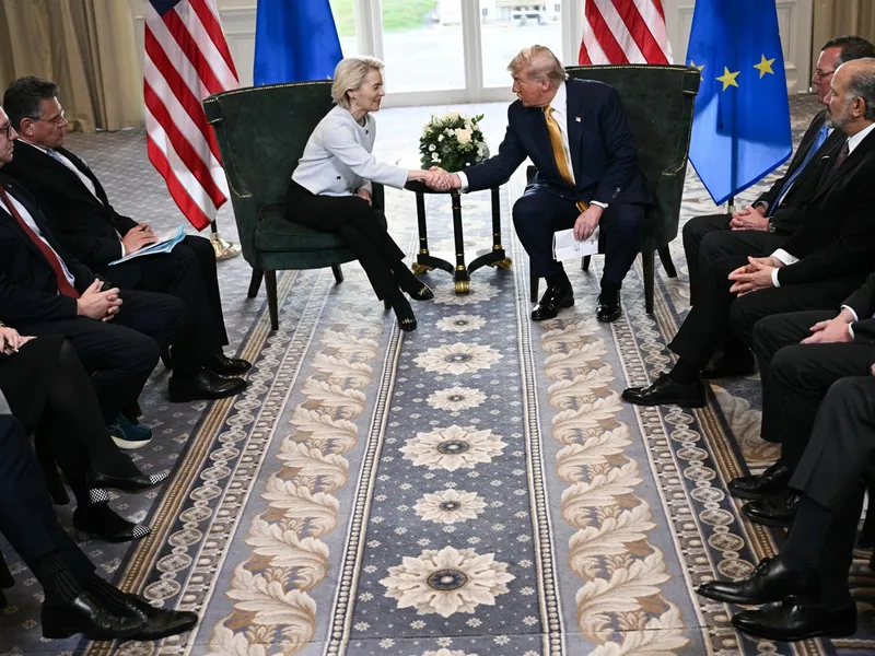 Președintele SUA a anunțat un acord comercial cu UE, după o întâlnire cu Ursula von der Leyen. Va fi un tarif de 15% pentru toate bunurile.