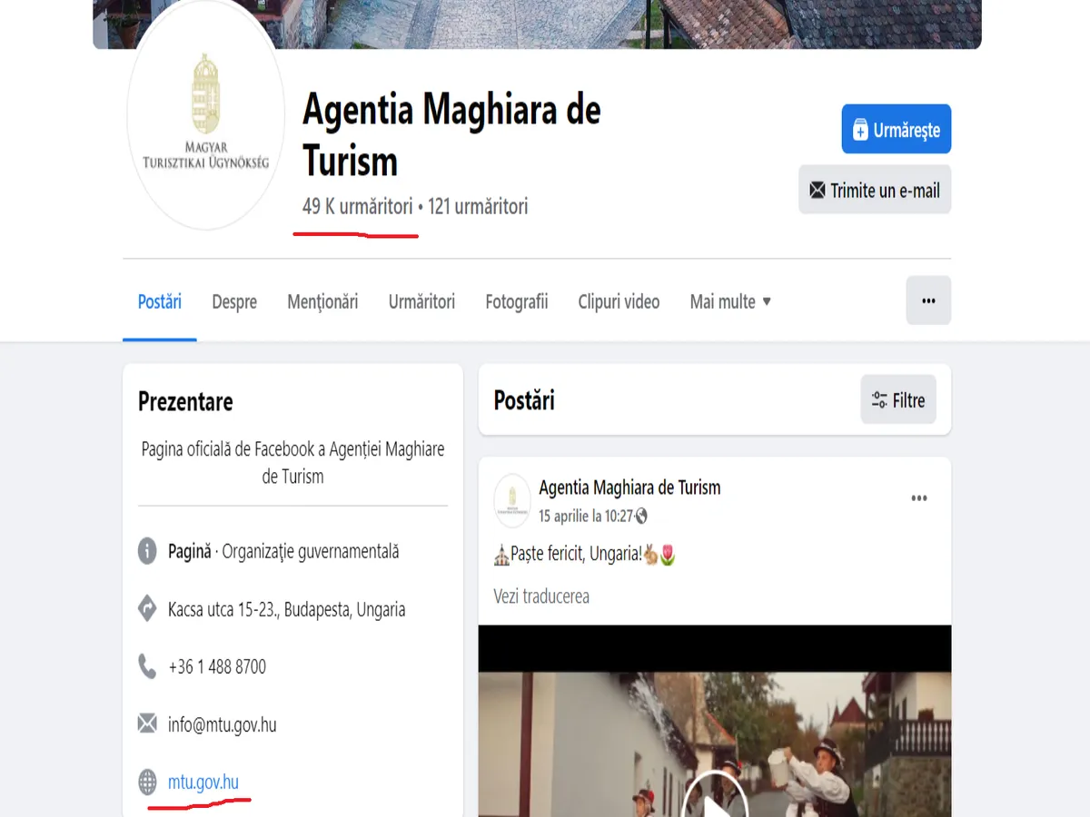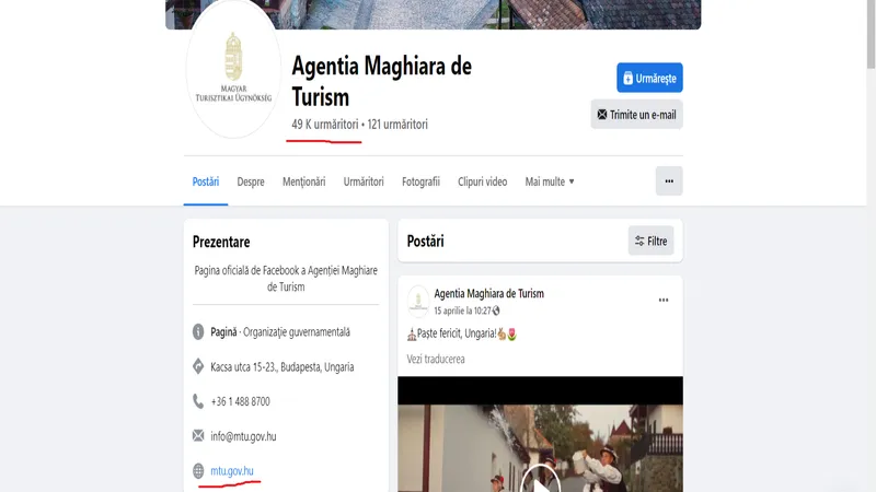 Vecinii maghiari sunt de sute de ori mai atenți la imaginea lor. Agenția maghiară de turism are 48.000 de urmăritori, de 30 de ori mai mulți decât România. (foto jos)