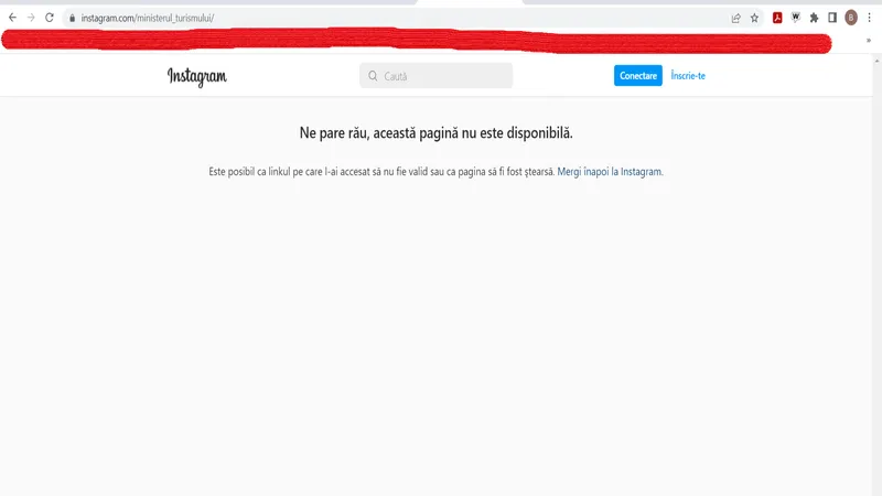 Dacă apeși butonul de Instagram apare mesajul: „Ne pare rău, această pagină nu este disponibilă. Este posibil ca linkul pe care l-ai accesat să nu fie valid sau ca pagina să fi fost ştearsă. Mergi înapoi la Instagram”.