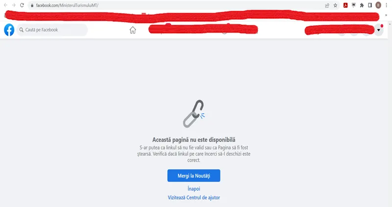 Pagina de Internet te trimite la o pagină de FB care nu mai există