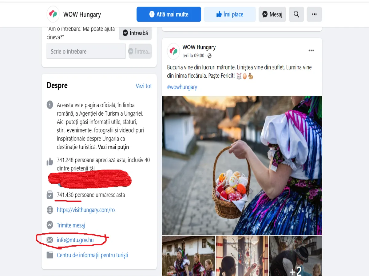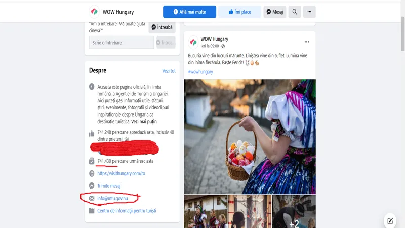 Pagina de FB „WOW Hungary„ este asociată Agenției maghiare de turism după cum se vede din imaginea de mai jos. Ea are 740.000 de urmăritori, de aprope 400 de ori mai mult ca pagina Ministerului Turismului din România. În plus, „WOW Hungary” ne anunță că „ Aceasta este pagina oficială, în limba română, a Agenției de Turism a Ungariei. Aici puteți găsi informații utile, sfaturi, știri, evenimente, fotografii și videoclipuri inspiraționale despre Ungaria ca destinație turistică.”