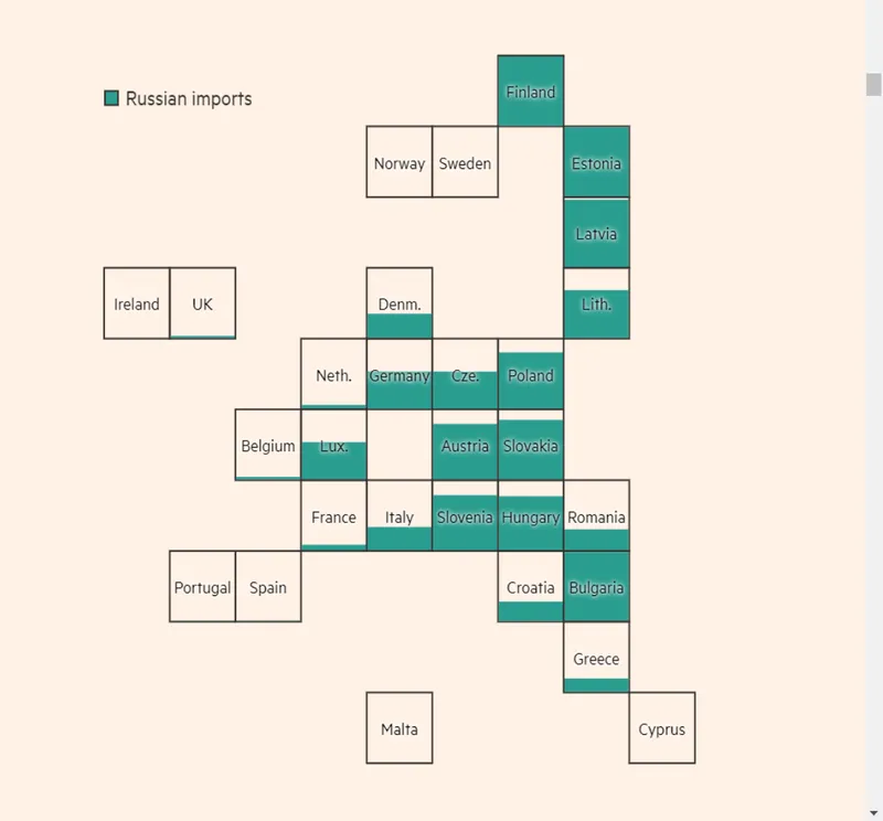 UE, Regatul Unit și SUA au impus sancțiuni ample băncilor ruse, oligarhilor și demnitarilor aflați în cercul lui Vladimir Putin ca răspuns la războiul din Ucraina. Totuși, importurile de petrol și gaze rusești au continuat să curgă în Europa, arată o analiză Financial Times.