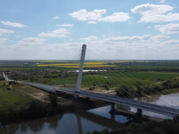 „Lucrările la podul hobanat peste râul Mureș se apropie final. În prezent se lucrează la rosturile de dilatație.