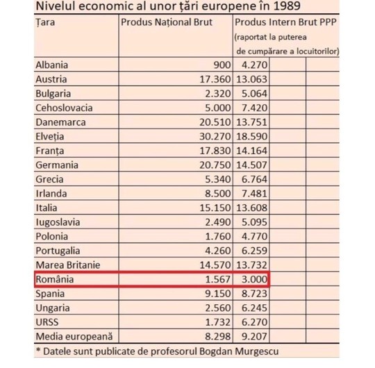 Să nu uităm că în 1989 ne luptam pentru ultimul loc cu ALBANIA lui Enver Hoxha: în PPP(S) ei stăteau mai bine!