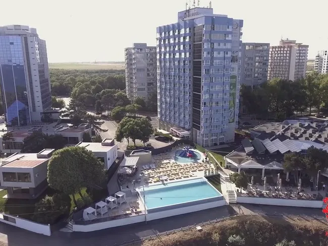 Hotelul este situat pe în Stațiunea Olimp și beneficiază de parcare gratuită în limita disponibilității, și de o nouă atracție acvatică: piscina Infinity Pool cu cascadă, în design exotic, pentru adulți, și o piscină pentru copii cu ansamblu de tobogane, cu beach-bar, dușuri și o terasă suspendată cu aceeași priveliște impresionantă asupra marii, cu program artistic în fiecare seară, acces Wi-Fi gratuit în întreg hotelul, păstrare valori în seif la recepție, posibilitate de organizare nunți, botezuri, zile de naștere sau onomastice în restaurantul hotelului în funcție de restricțiile impuse.