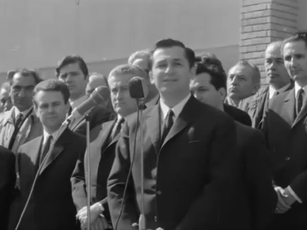 Ion Iliescu apare într-o înregistrare de arhivă la șantierul Porțile de Fier. În anii 70 ILiescu era mare șef în comunism