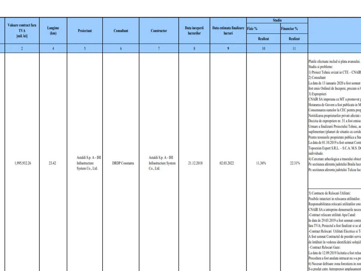 1. Construcția podului peste fluviul Dunărea în zona Brăila, cu o lungime de 1.974,30 m;