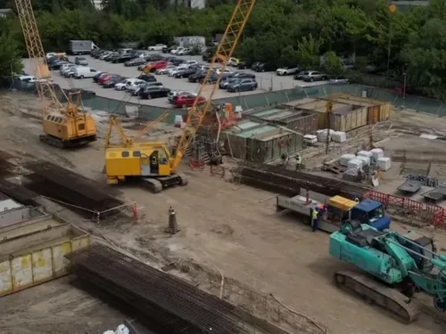 La viitoarea stație Piața Montreal s-au efectuat antemăsurători pentru grinda de ghidaj și a fost transportat în șantier excavatorul pentru viitoarele excavații;