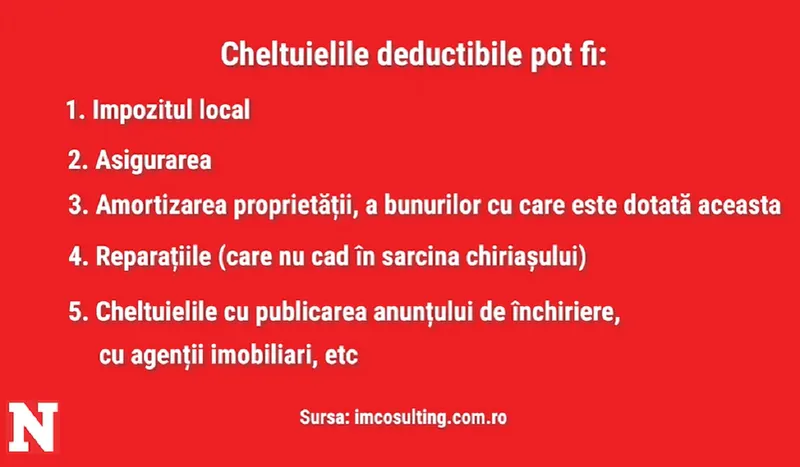 - Venitul din chirie include și orice cheltuieli ce cad, conform legii, în sarcina proprietarului, dacă sunt efectuate de chiriaș.