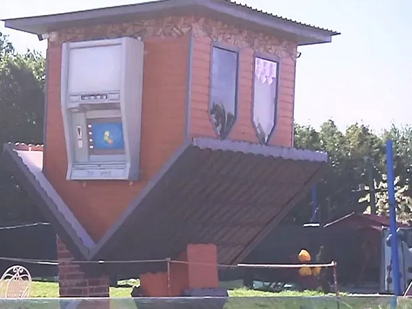 Vorbim despre nouă căsuțe, care au fost construite și amplasate invers, cu acoperișul pe pământ și cu fundația în aer.