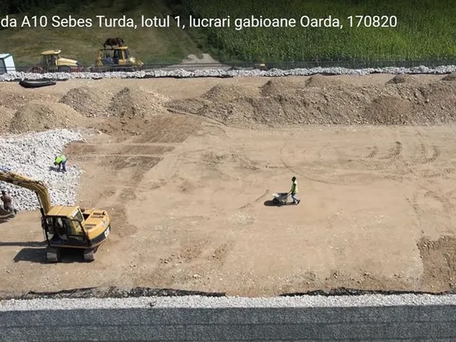 Așa se lucrează pe Sebeș-Turda lotul 1, tronson construit de italienii de la Pizzarotti: cei câțiva muncitori sunt treziți la realitate doar atunci când observă că sunt filmați.
