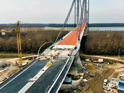 „La început de 2022, s-au acumulat întârzieri majore, mai întâi cu ridicarea segmentelor de tablier (probleme logistice și vânt puternic), apoi au fost amplificate de procedurile de sudare a tablierului din vară (se suda doar noaptea din cauza temperaturilor ridicate). Colac peste pupăză, din luna august WeBuild a apăsat puternic frâna pe drumurile de legătură.