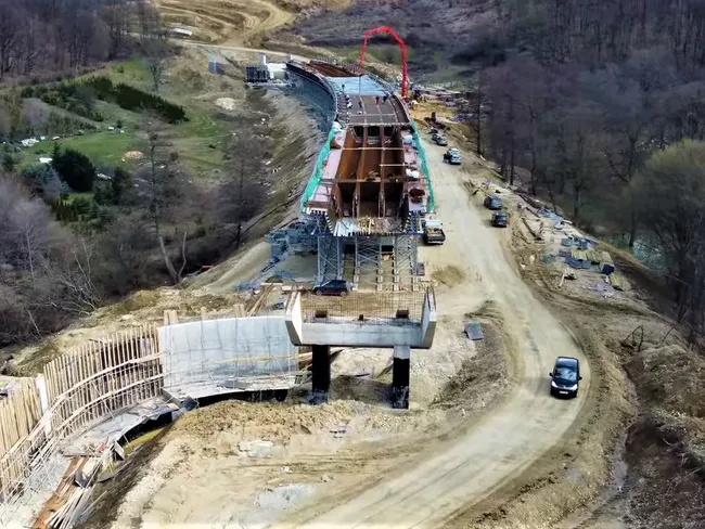 În acte, lucrările au început în 14.04.2021, deci ar trebui să fie gata în 3 săptămâni. Dar abia au ajuns la 45% pe un ciot (dificil, e drept) cu o bandă pe sens de doar 5,53 kilometri.