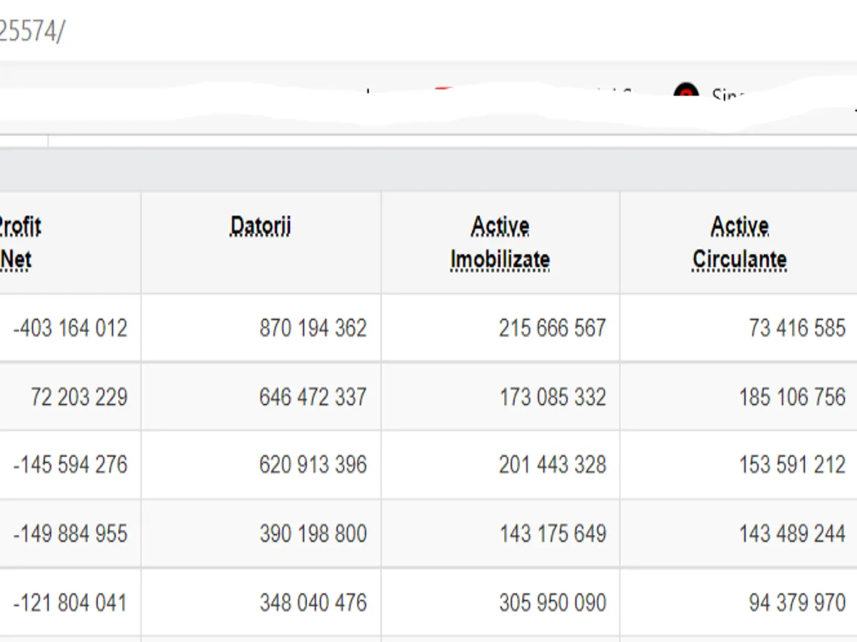 2020 - Pierderi în valoare de: 403 milioane, Datorii în valoare: 870 milioane lei.