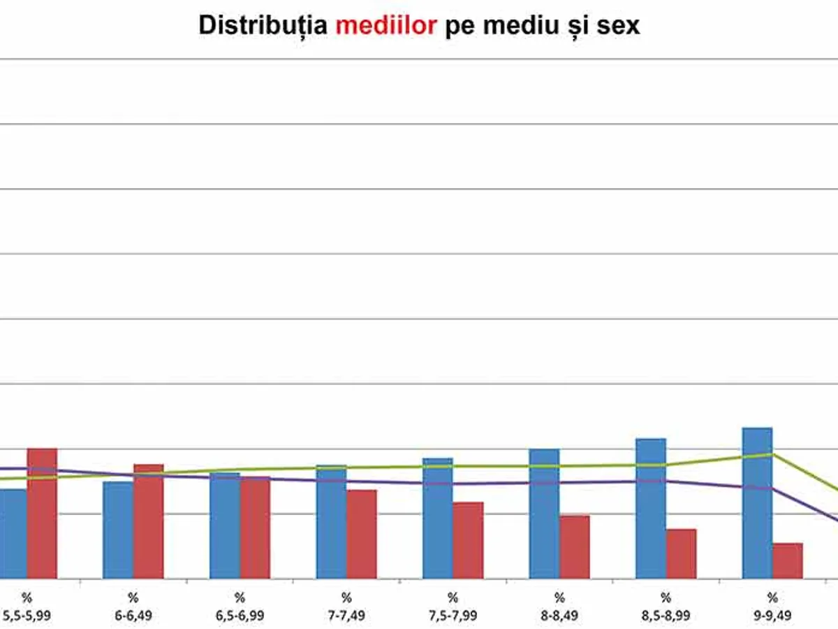 Cele mai multe medii sub cinci sunt în mediul rural: 37%. Este un procent mai mult decât dublu față de cel consemnat în mediul urban (sub 15%).