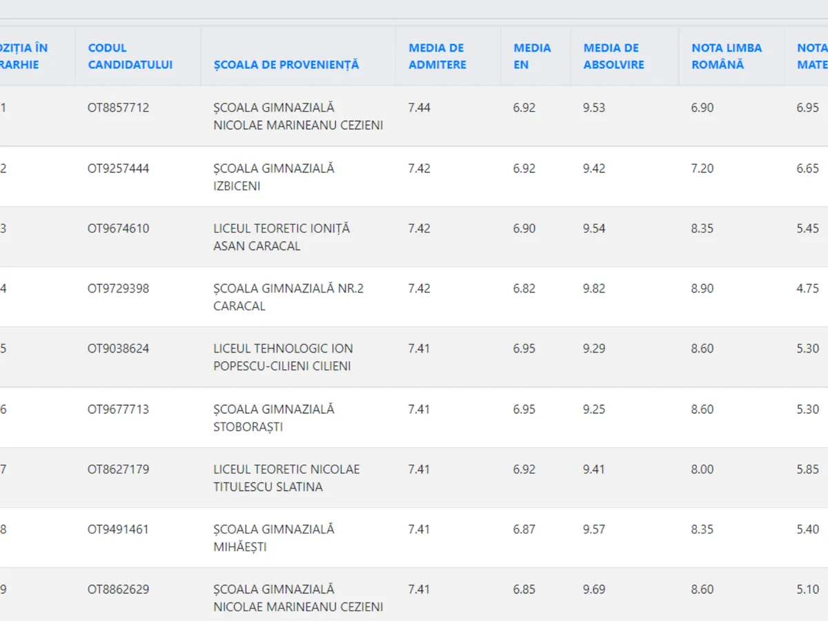 În județul Olt, un elev cu media din gimnaziu de 9,82, a primit la examenul de matematică de la Evaluare națională nota 4,7. Un altul a luat la matematică 5,1 deși avuse o medie V-VIII de peste 9.