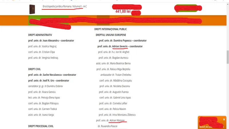 La aceeași secțiune din Enciclopedia Juridică a contribuit și Adrian Năstase, fost premier al României și dublu condamnat penal.