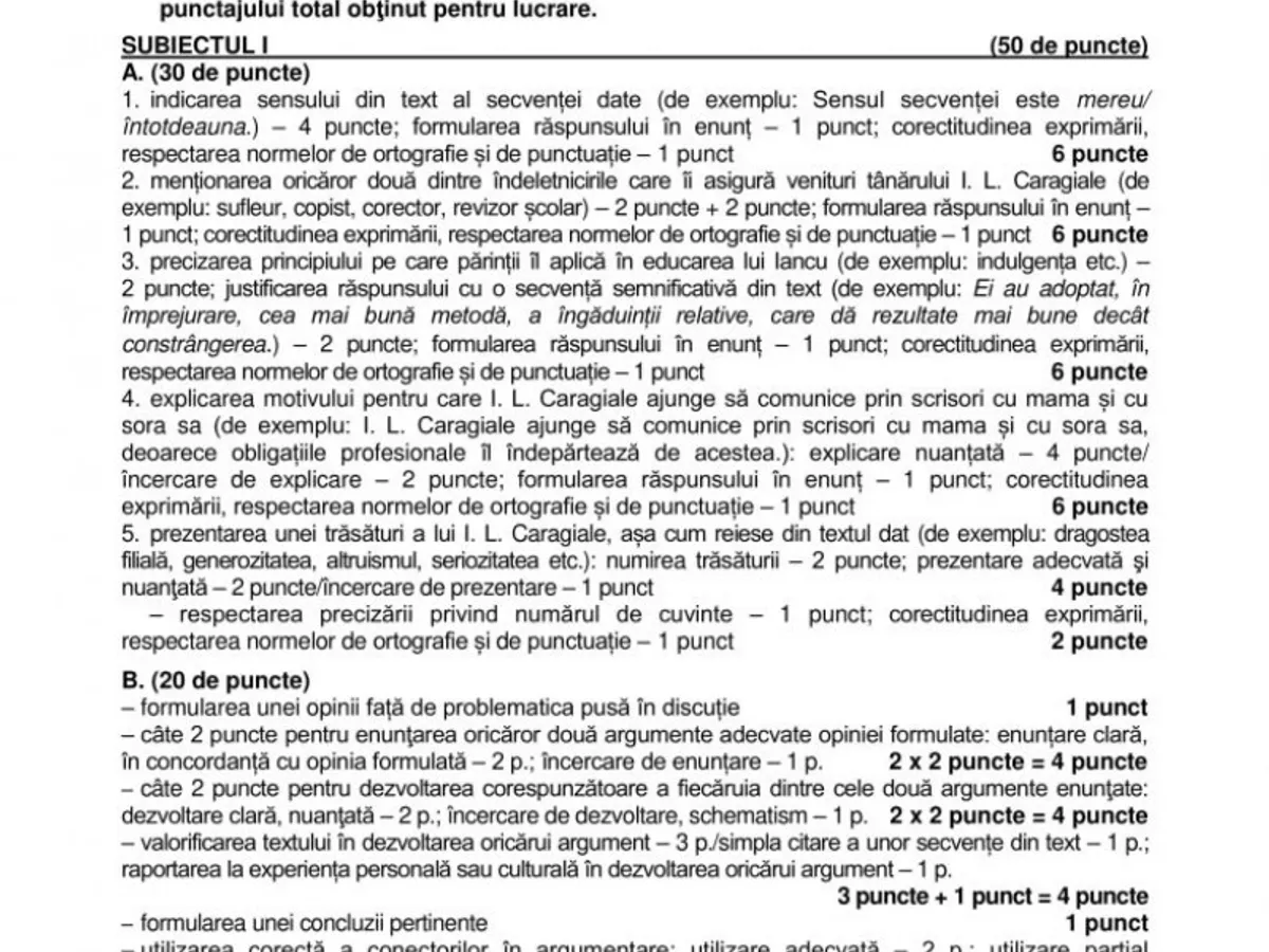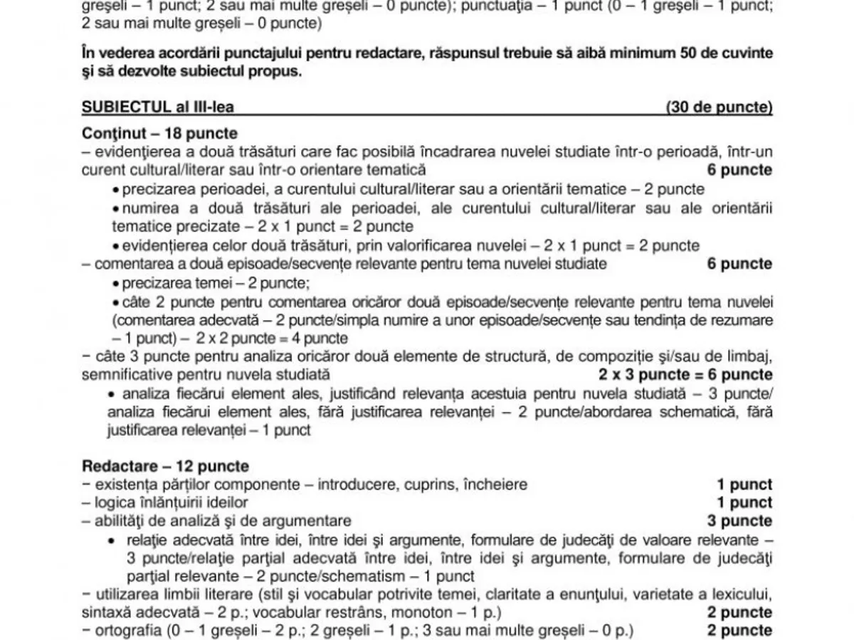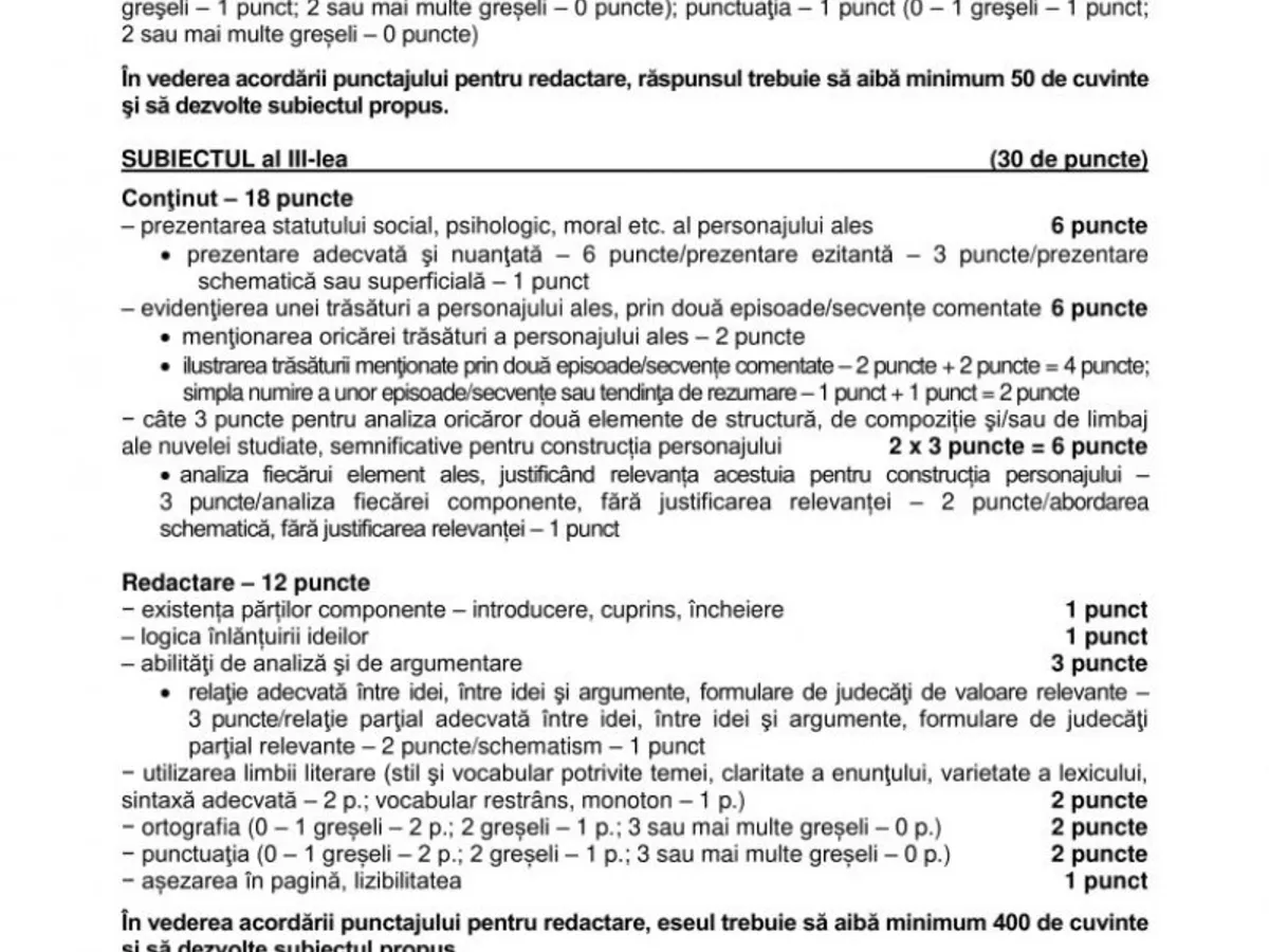 Barem Limba română, profil uman-pedagogic - Bacalaureat 2021