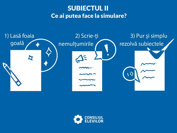 Consiliul Național al Elevilor a anunțat, in urma cu o săptămână, la simularea Evaluării Naționale, ca ii încurajează pe elevi sa scrie pe foaia de examen ce ii nemulțumește la sistemul de educație românesc, in loc sa rezolve subiectele: “Dăm foaia goală pentru că încă o evaluare în clasa a VII-a este nejustificată, când încă nu ne-a fost clarificat de ce am dat-o pe cea din clasa a VI-a, căci încă o simulare nu ne va face nici mai stăpâni pe competențele noastre, nici mai puțin stresați la gândul că ne așteaptă ani grei, ani în care vom alerga de la un meditator la altul, ani în care, după atâtea examene și evaluări standardizate, nimeni nu ne va întreba spre ce domeniu vrem să ne îndreptăm.”