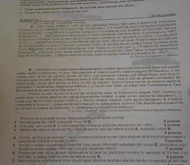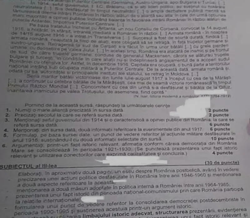 SUBIECT BAC 2024 ISTORIE - Foto: Stirileprotv.ro