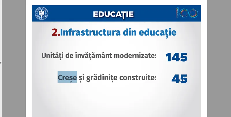 Premierul s-a lăudat că partidul a modernizat 145 de școli în contextul în care, la nivel national, există 2.418 unităţi şcolare cu grupurile sanitare în exterior. Prin raportare, au fost modernizate 6% dintre școlile cu toaletele în fundul curții.