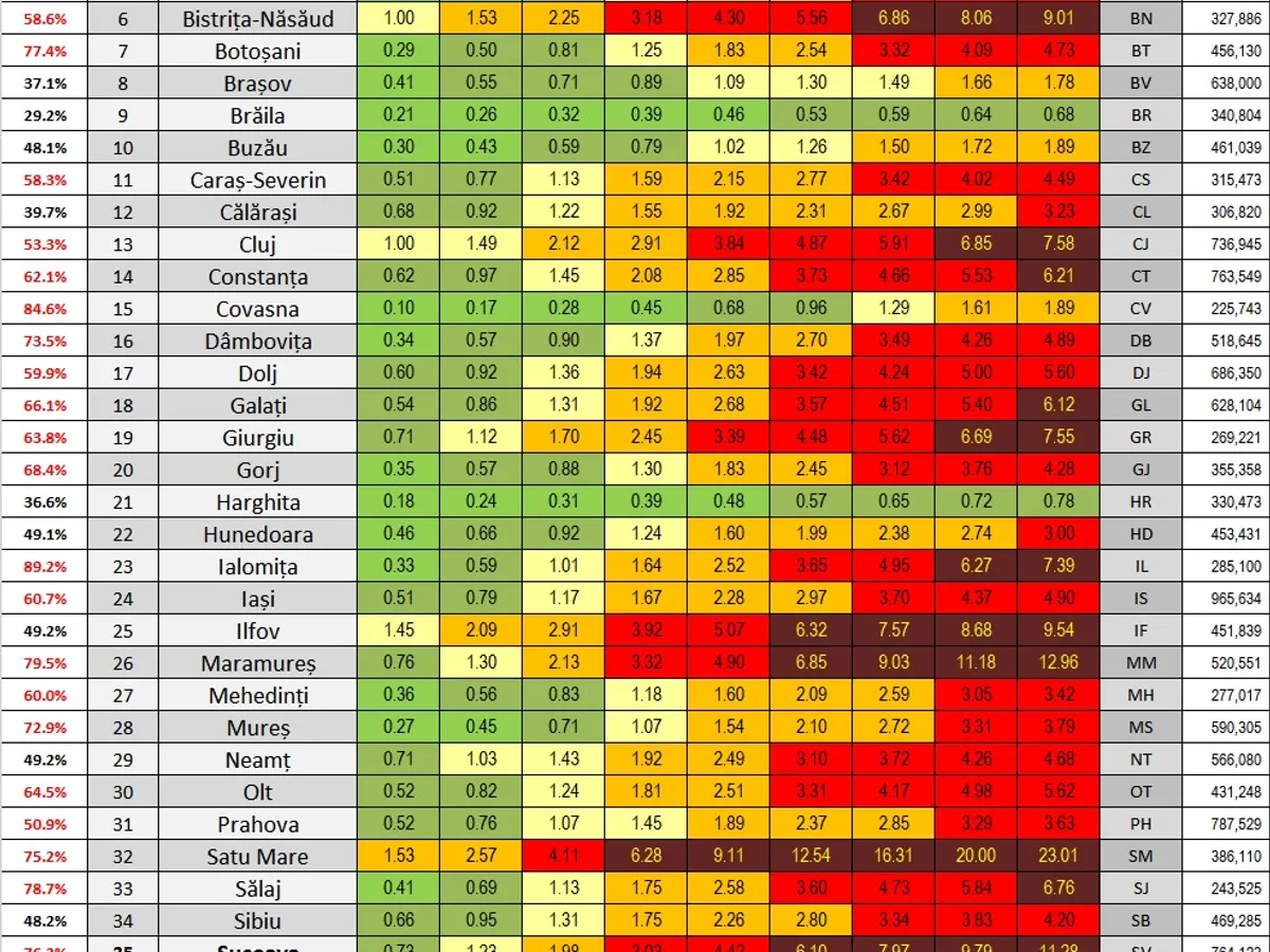 Cercetătorul Octavian Jurma a făcut o simulare plecând de la datele actuale pentru a vedea când va fi depășită incidența de 6 la mie în fiecare județ.